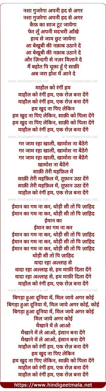 Lyrics of Mahaul Ko Rangeen - नशा गुजरेगा अपनी हद से अगर