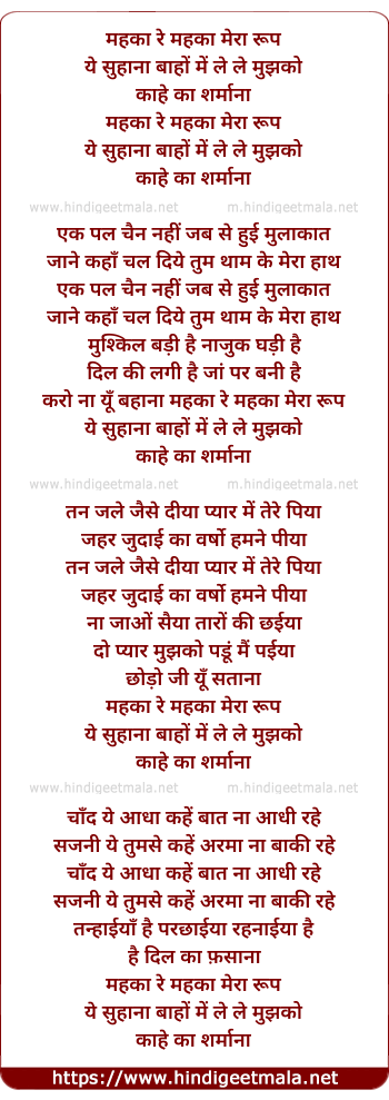 Lyrics of Maheka Re Maheka Mera Roop - महका रे महका मेरा रूप