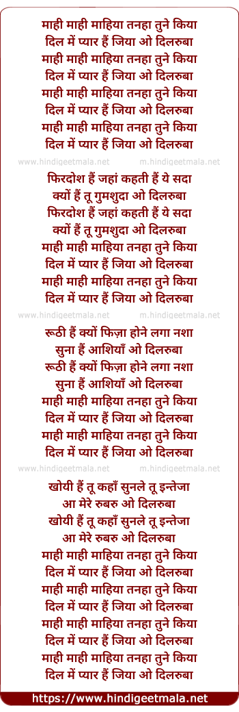 Lyrics of Mahi Mahi Mahiya Tanha Tune Kiya - माही माही माहिया तनहा तुने किया
