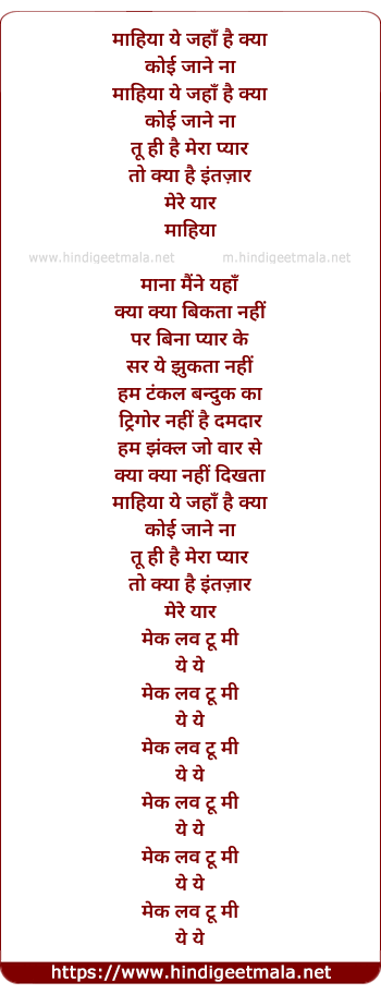 mahiya yeah jahan hai kya koi jaane na