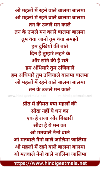 Lyrics of Mahlo Me Rahne Wale - महलों में रहने वाले