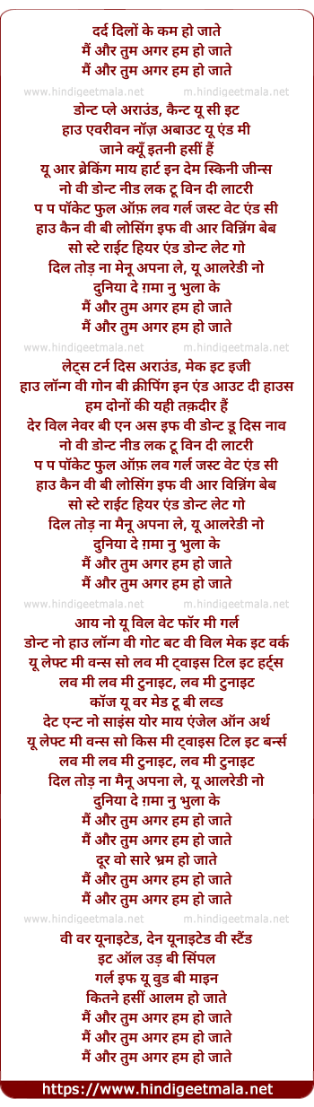 Lyrics of Mai Aur Tum - दर्द दिलों के कम हो जाते