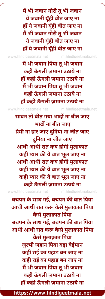 Lyrics of Mai Bhi Jawa Gauri Tu Bhi Jawa - मैं भी जवान गोरी तू भी जवान