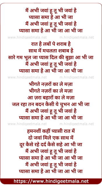 Lyrics of Mai Bhi Jawan Hu, Tu Bhi Jawan Hai - मैं अभी जवां हू तू भी जवां है