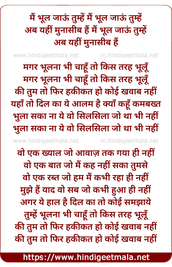 Mai Bhool Jau Tumhe Ab Yehi Munasib Hai - मैं भूल जाऊं तुम्हें मैं भूल जाऊं तुम्हें
