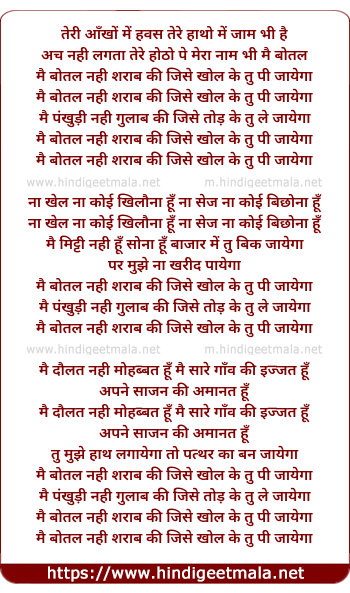 Lyrics of Mai Botal Nahi Sharab Ki - मै बोतल नही शराब की