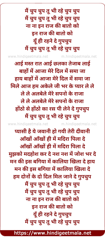 Lyrics of Mai Chup Chup - मैं चुप चुप