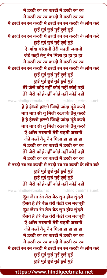 Lyrics of Mai Dardee Rab Rab Kardee Mai Dardee Rab Rab - मै डरदी रब रब करदी मै डरदी रब रब