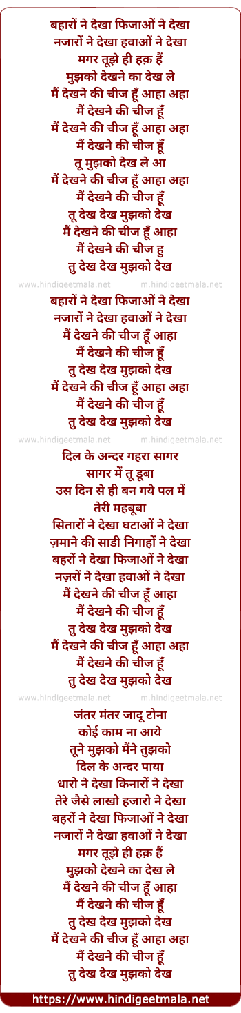 Lyrics of Mai Dekhne Ki Cheez Hu - बहारों ने देखा फिजाओं ने देखा