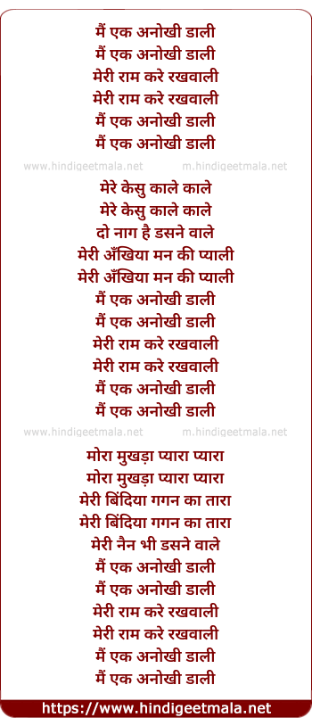 Lyrics of Mai Ek Anokhi Daali - मैं एक अनोखी डाली
