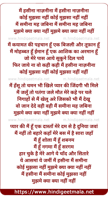 Lyrics of Mai Hasina Naznina - मैं हसीना नाज़नीना