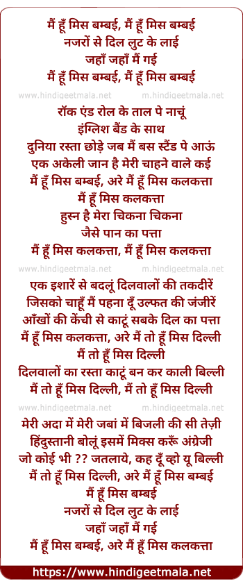 Lyrics of Mai Hu Miss Bombe - मैं हूँ मिस बम्बई