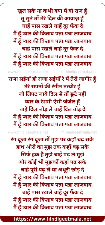 Lyrics of Mai Hu Pyar Ki Kitab Panna Panna Lajabab - मैं हूँ प्यार की किताब पन्ना पन्ना लाजवाब