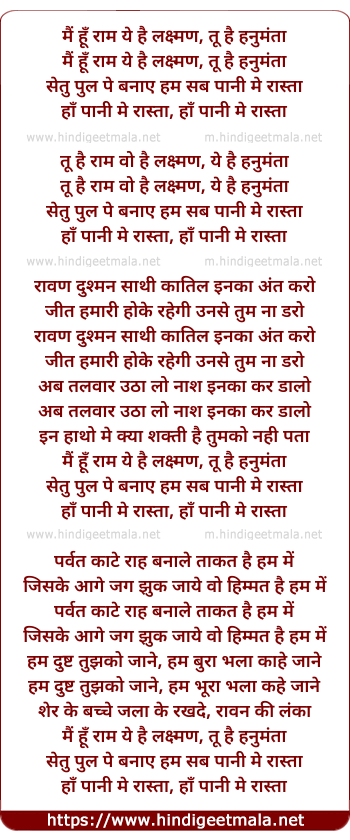 Lyrics of Mai Hu Raam - मैं हूँ राम