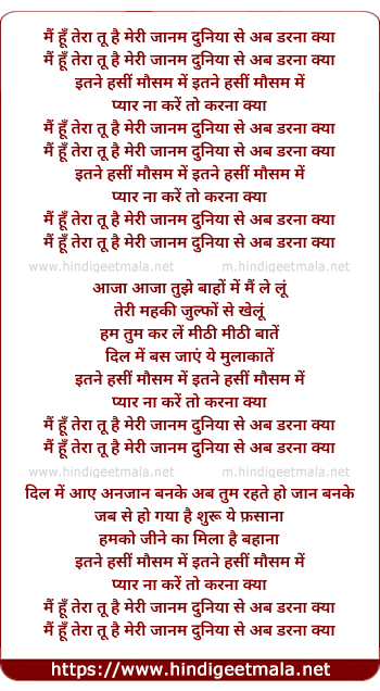 main hu tera tu hai meri jaanam duniya se ab darna kya