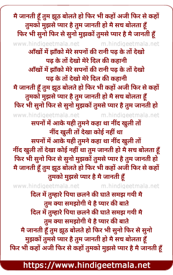Lyrics of Mai Jaanti Hu Tum Jhuth Bolte Ho - मै जानती हूँ तुम झूठ बोलते हो