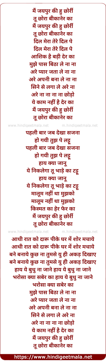 Lyrics of Mai Jaipur Ki Hu Chhori
