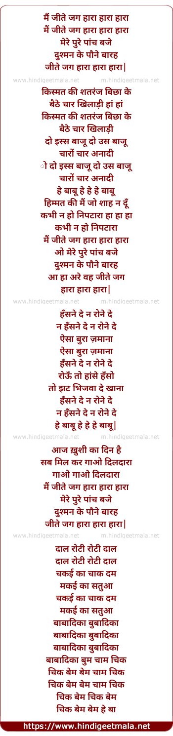 Poetic Translation - Lyrics of Mai Jeeta Jag Hara