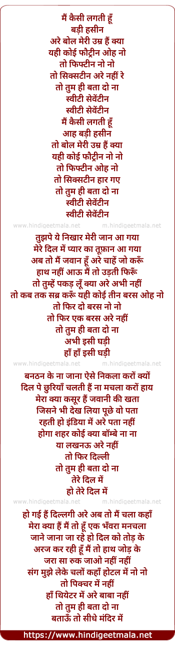 Lyrics of Mai Kaisi Lagti Hu Badi Hasin - मैं कैसी लगती हूँ बड़ी हसीन