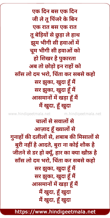 Lyrics of Mai Khuda (Female) - एक दिन बस एक दिन