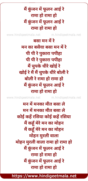 Lyrics of Mai Kunjan Me Phulan Aayi Re - मैं कुंजन में फूलन आई रे