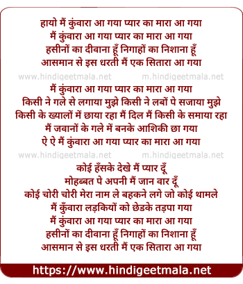 Lyrics of Mai Kunwara Aa Gaya - मैं कुंवारा आ गया