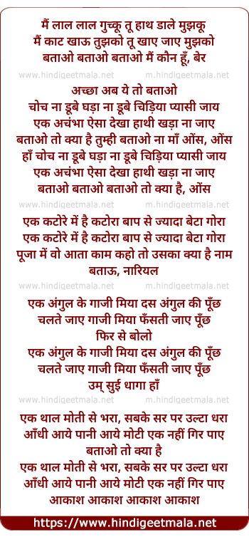 Lyrics of Main Laal Laal Guchun - मैं लाल लाल गुच्कू