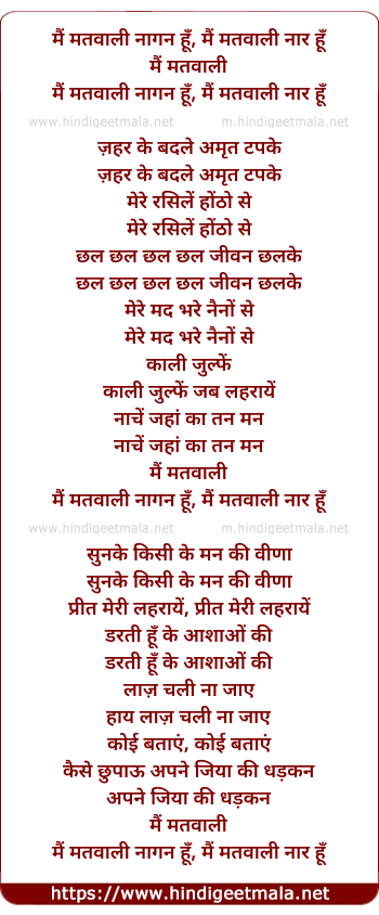 Lyrics of Mai Matwali Nagin Hu - मैं मतवाली नागन हूँ