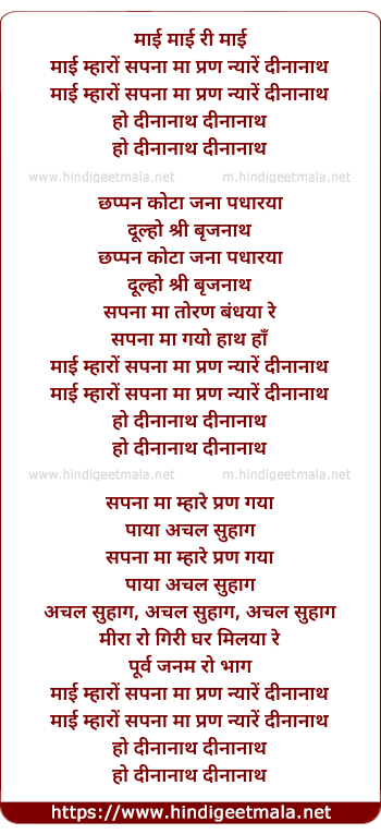 maayi mharo sapna na pran nyare dinanath