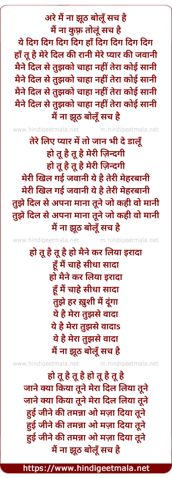 Lyrics of Mai Naa Jhuth Bolu Sach Hai - मैं ना झूठ बोलूँ सच है