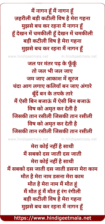 Lyrics of Mai Nagan Hu - मैं नागन हूँ