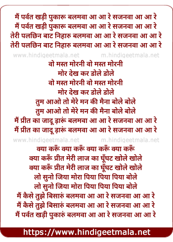 Lyrics of Mai Parwat Khadi Pukaru - मैं पर्वत खड़ी पुकारू बलमवा आ आ रे सजनवा आ आ रे