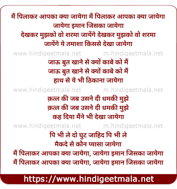Mai Pilakar Aap Ka Kya Jayega - मैं पिलाकर आपका क्या जायेगा मैं पिलाकर आपका क्या जायेगा