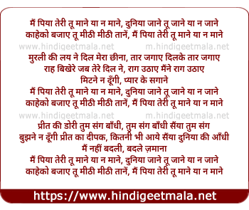 Lyrics of Mai Piya Teri Tu Mane Ya Na Mane - मैं पिया तेरी तू माने या न माने, दुनिया जाने तू जाने या न जाने