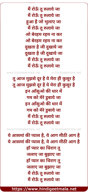 Lyrics of Mai Roun Tu Rulaye Ja - मैं रोऊँ तू रुलाये जा