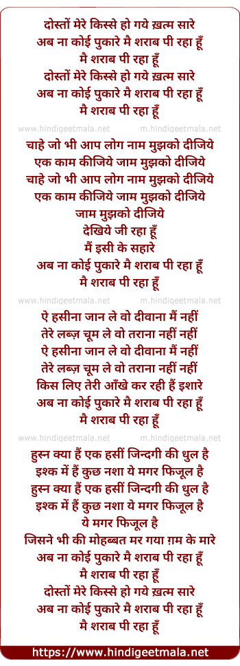 Lyrics of Mai Sharab Pee Raha Hu - मै शराब पी रहा हूँ
