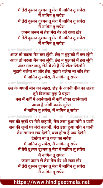 Lyrics of Mai Teree Dushman Dushman Too Mera - मैं तेरी दुश्मन दुश्मन तू मेरा