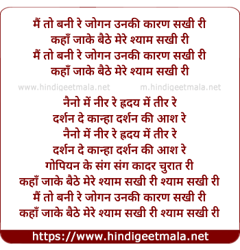 Lyrics of Mai To Bani Re Jogan Unki - मैं तो बनी रे जोगन उनकी