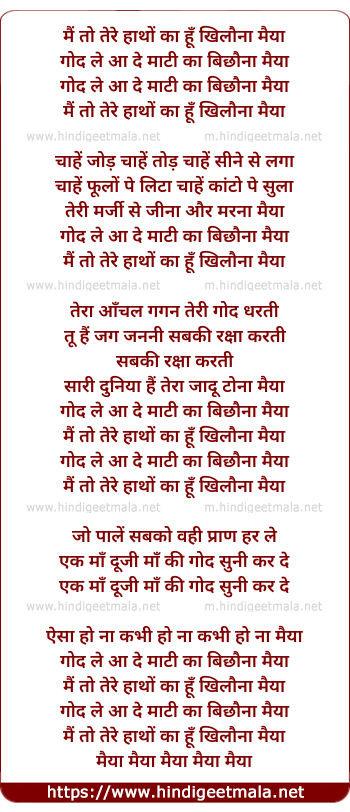 Lyrics of Mai To Tere Hatho Ka Hun Khilona - मैं तो तेरे हाथों का हूँ खिलौना