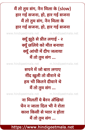 Lyrics of Mai Toh Tum Sang Nain Milake - मैं तो तुम संग नैन मिला के