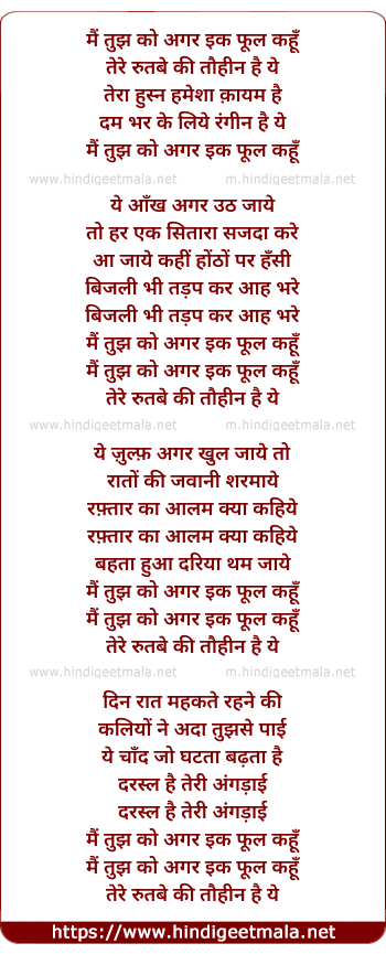 Lyrics of Mai Tujhko Agar Ek Phul Kahu - मैं तुझ को अगर इक फूल कहूँ