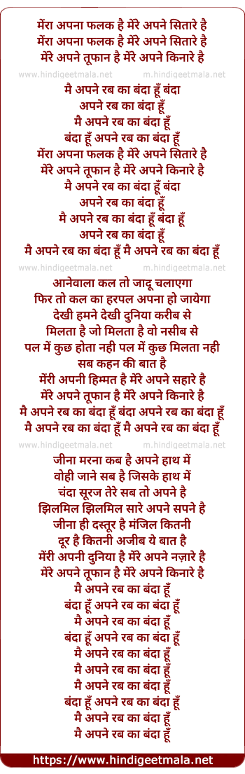 Lyrics of Main Apane Rab Ka Banda Hoon - मैं अपने रब का बंदा हूँ