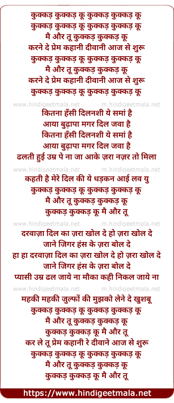Lyrics of Main Aur Tu Kukkad Kukkad Koo - मै और तू कुक्कड़ कुक्कड़ कू