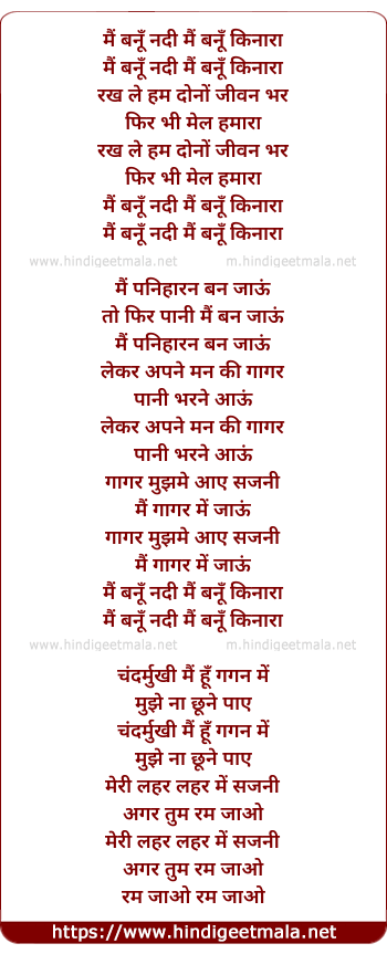 Lyrics of Main Banoon Nadi Main Banoon Kinara - मैं बनूँ नदी मैं बनूँ किनारा