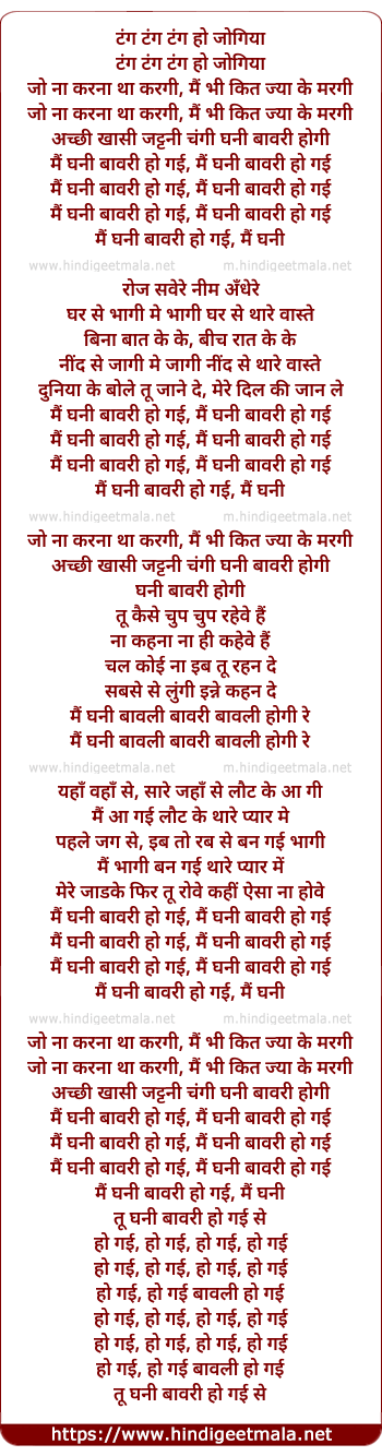 Lyrics of Main Ghani Bawri Ho Gai - मैं घनी बावरी हो गई