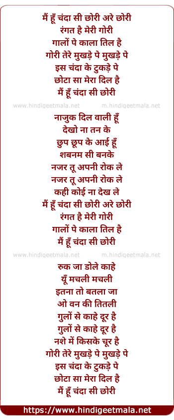 Lyrics of Main Hoon Chanda See Chhori - मैं हूँ चंदा सी छोरी