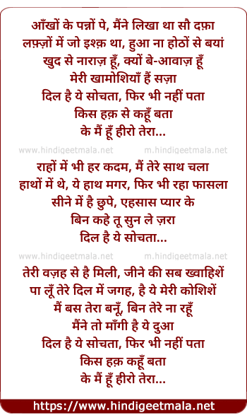 Lyrics of Main Hoon Hero Tera - मैं हूँ हीरो तेरा