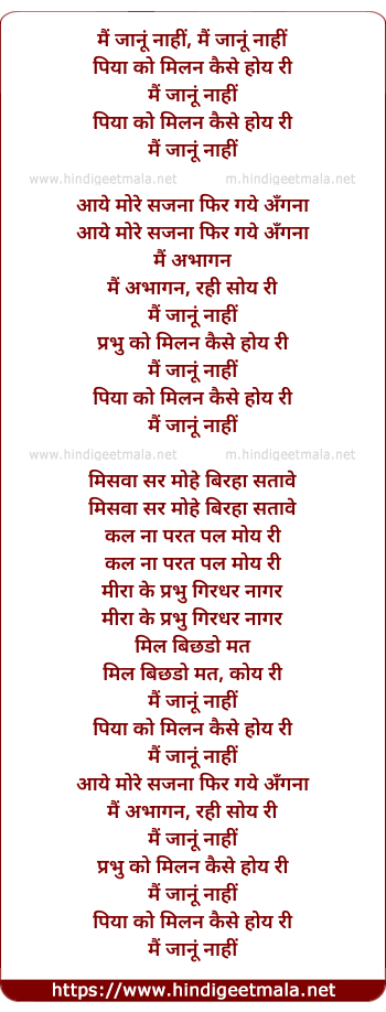 Lyrics of Main Jaanu Naahi - मैं जानूं नाहीं