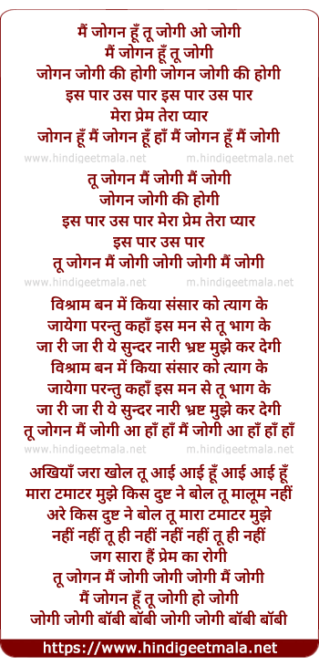Lyrics of Main Jogan Hoon Tu Jogi - मैं जोगन हूँ तू जोगी