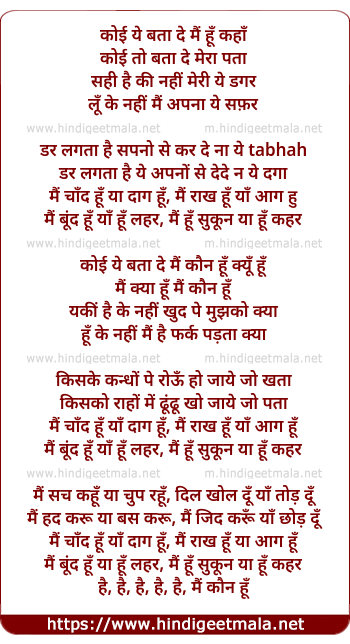 Lyrics of Main Kaun Hoon - मैं कौन हूँ